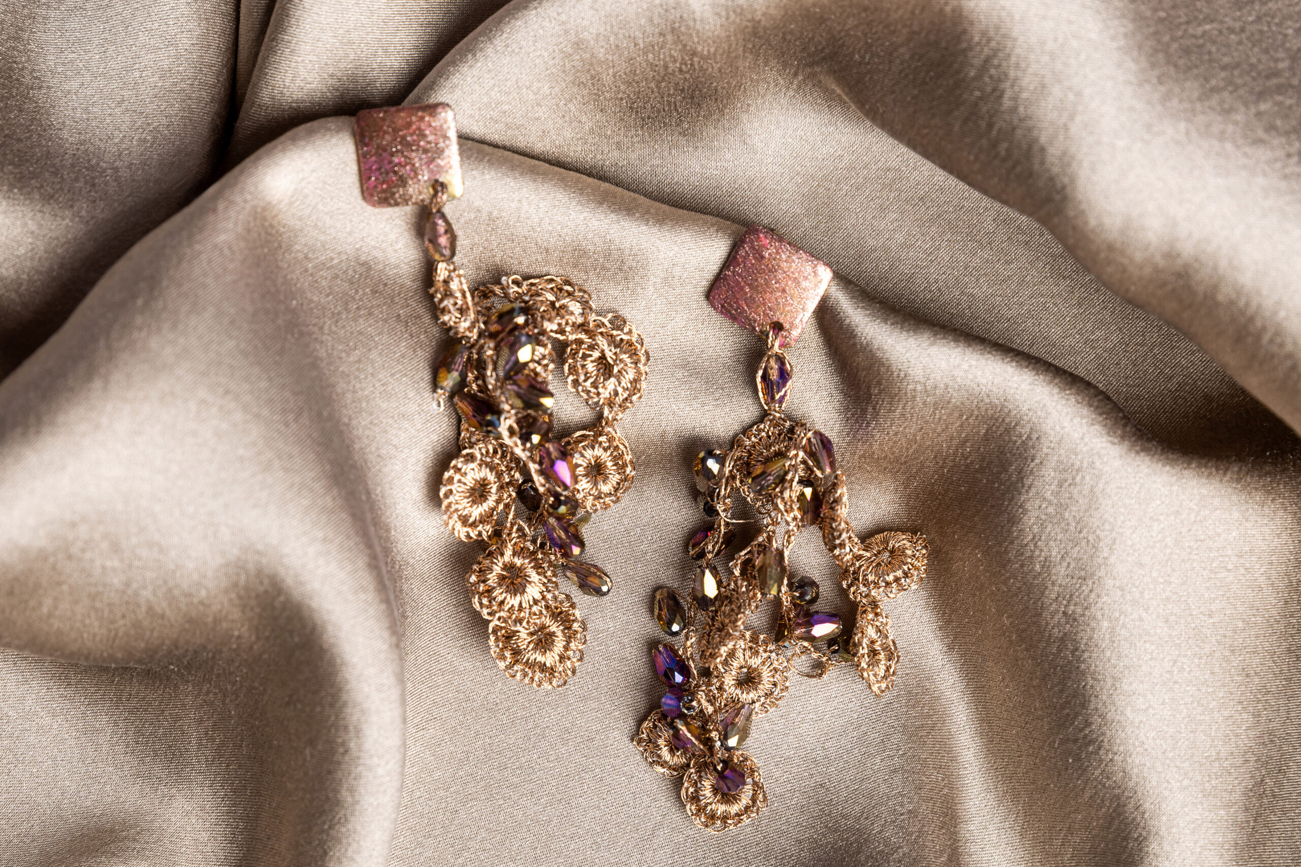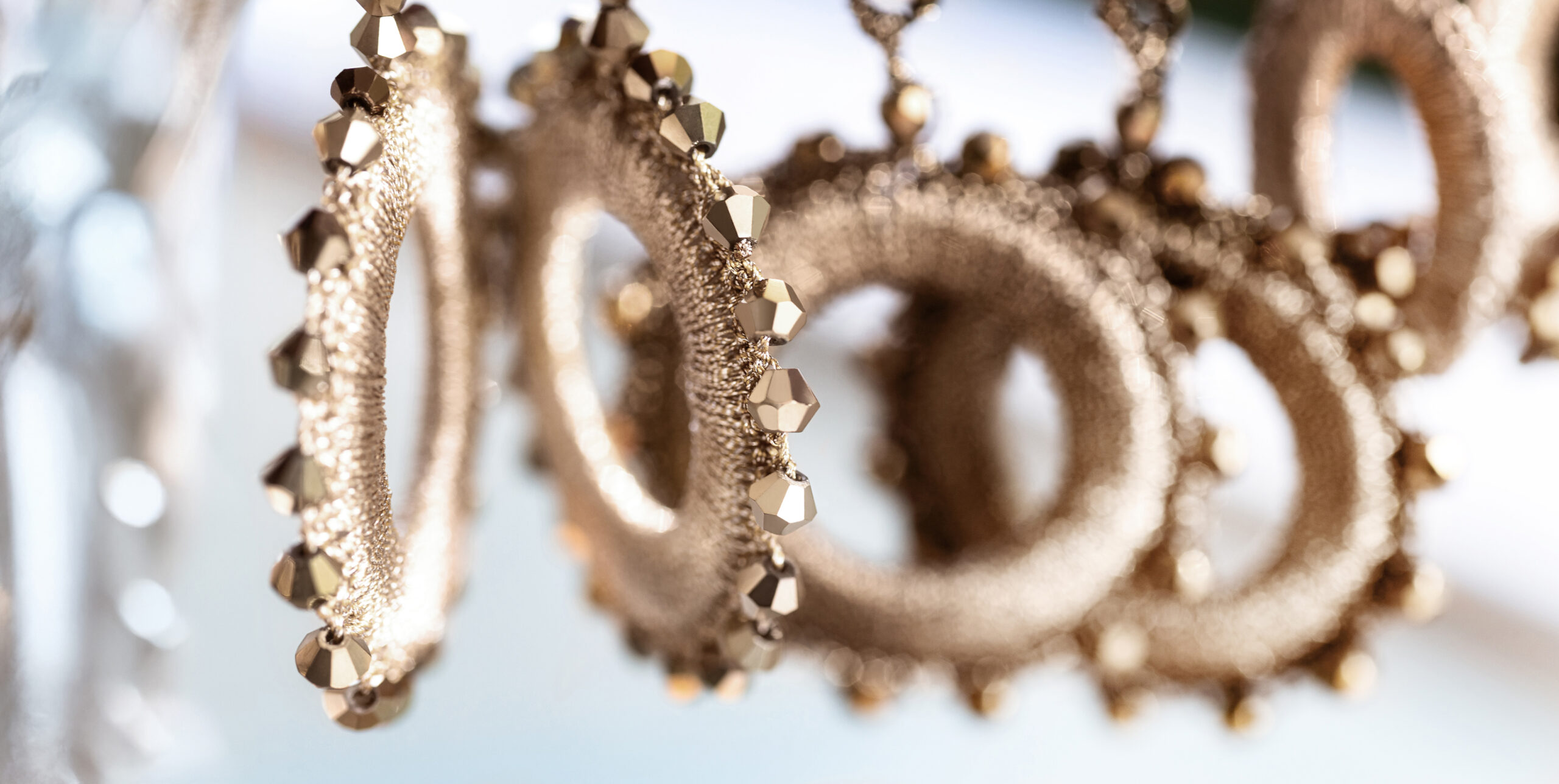 Meine Suche nach schönen, qualitativ hochwertigen Materialien führt mich in Fachgeschäfte in Wien und Graz, wo ich geschliffene Glasperlen, Metallic-Bänder, hypoallergene Ohrstecker und Verschlüsse für meine Schmuckstücke einkaufe. Die „Produktion“ findet an Abenden daheim, meistens aber in den Zügen der ÖBB auf der Strecke zwischen Wien und Graz statt, wo ich als Wochen-Pendlerin viel unterwegs bin.